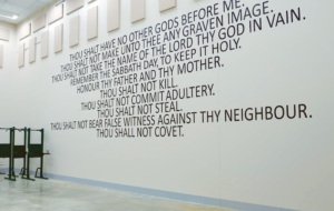 A Protestant version of the Commandments was painted on the wall of the gym at the Itasca County Jail. The facility, which cost $75 million, opened in early May for public tours. Some residents complained about the religious statement being included. Last month, officials ordered it painted over.