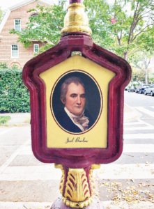 Washington, D.C., also contains an unusual tribute to Barlow. His mansion in the city, known as Kalorama, bequeathed its name to the surrounding neighborhood. On a street called Bancroft Place is an image of Barlow affixed to what used to be a police call box. The marker refers to Barlow as “a businessman, diplomat and published poet.”