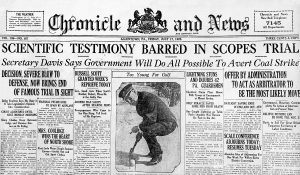 The trial in The State of Tennessee v. John Thomas Scopes turned out to be the public relations bonanza Rappleyea and the town fathers hoped for. It was a media circus. As History.com notes, “Outside, Dayton took on a carnival-like atmosphere as an exhibit featuring two chimpanzees and a supposed ‘missing link’ opened in town, and vendors sold Bibles, toy monkeys, hot dogs, and lemonade.”